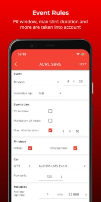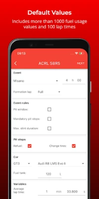 Avasta ACC rajad ja autod enam kui 1200 kütusekulu väärtuse ja 120 ringiajaga. Vali rada, auto ja kestus, et saada edukaks võidusõiduks vajalik teave, sealhulgas ohutud, tasakaalustatud ja kütusesäästlikud strateegiad.