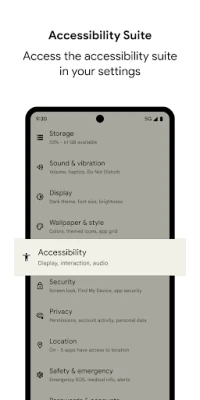 Avastage **Android Accessibility Suite**, mis on loodud selleks, et muuta iga nutiseadme kasutaja kogemus sujuvamaks ja intuitiivsemaks. See tööriistakomplekt pakub laia valikut uuenduslikke lahendusi, mis on loodud spetsiaalselt selleks, et pakkuda suuremat kontrolli ja ligipääsetavust kõigile. Olgu tegemist igapäevaste toimingute lihtsustamise või digitaalse sisu parema mõistmisega, **Android Accessibility Suite** muudab teie Android-seadme interaktsiooni personaalsemaks ja mugavamaks. See on loodud selleks, et tuua teieni kõik, mida vajate, otse teie käeulatusse, pakkudes enneolematut kasutusmugavust ja funktsionaalsust.