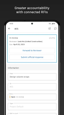 Andmete haldus on platvormi tugev alustala. Saate koheselt ligi värskeimatele joonistele ja jagatud plaanidele, tehes võrdlusi, jagades ja märkides neid otse välitöödel – see välistab oletused ja tagab täpsuse paigalduses. Kolmemõõtmeliste mudelite (sh Revit, AutoCAD, RVT, DWG, NWC, IFC, NWD) vaatamine ehitusplatsil võimaldab kriitiliste otsuste kiiret tegemist ning pakub vajalikku detaili paigaldusprotsessideks. Kvaliteedikontrolli valdkonnas pakub Autodesk Construction Cloud sujuvat RFI-de (teabenõuete) ja esildiste haldust, vähendades andmekao riski ja dubleerivat tööd. Fotode abil on lihtne dokumenteerida edusamme ja lisada viiteid probleemidele, RFI-dele või ajakavale, tagades igakülgse ülevaate projekti käigust igal hetkel.