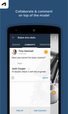 Autodesk Fusion™ for Android võimaldab vaadata ja teha koostööd 3D CAD-mudelitega igal ajal ja igas kohas. Jagage disaine hõlpsalt oma meeskonna, klientide ja partneritega. Rakendus toetab üle 100 failivormingu, näiteks DWG, SLDPRT ja STL.