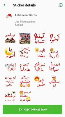 Avasta rakenduses Lebanese 'Whatsapp' Stickers rikkalik valik Liibanoni-teemalisi kleebiseid. Naudi arvukaid tasuta kleebisepakette, mis on reklaamivabad. Väljenda oma tundeid ja lisa vestlustele Liibanoni hõngu lõbusate piltidega.